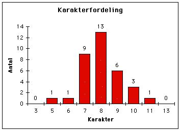 Af disse bestod alle på nær én. Karakterfordelingen fremgår af nedenstående figur: