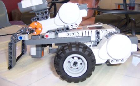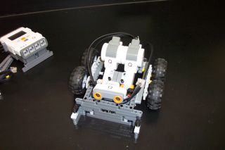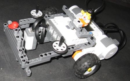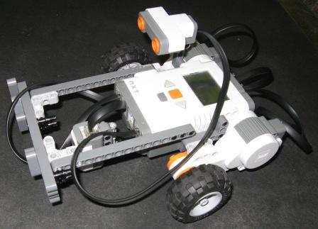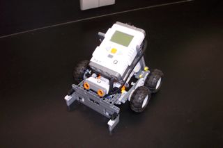 Ideer til konstruktion af sumo brydereDer er meget inspiration til den videre konstruktion at finde på nettet f.eks. en sumo bryder, med to farvesensorer og et beskyttende skjold:Eller find billeder af en stærk sumo bryder, som har stor skub styrke pga firhjulstræk: Eller find billeder, hvor det kan ses, hvordan afstandssensorer kan påmonteres og hvordan en sumo robot kan beskyttes mod at blive vippet: SUMO for LEGO NXT-G MindStorms Robots! er også et godt sted at hente inspiration. På siden vises billeder af 12 forskellige sumo robotter og videoer af deres kampe. Det ser ud som om mange af robotterne har taget udgangspunkt i en helt flad robot med lavt tyngdepunkt. |